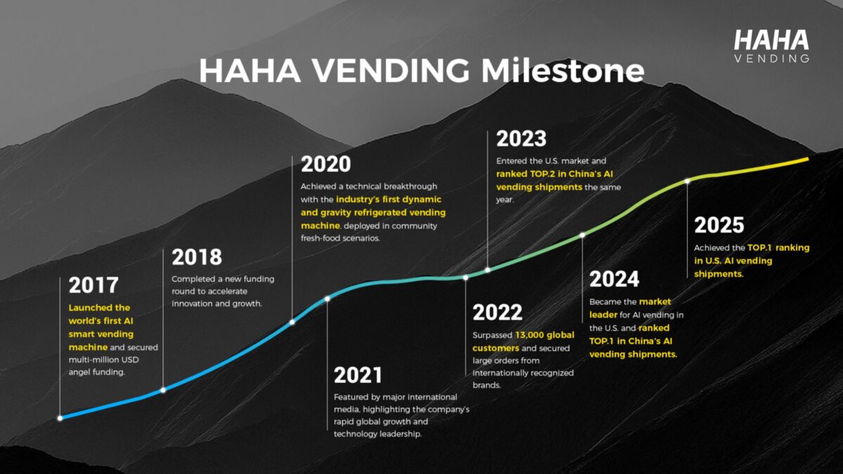 HaHa vending (Haha lnnovation INC) is the inventor and leader of AI vending machine. So far, we have served 13,000+ clients with more than 100,000 machines all over the world. Some machines have run stably for 9+ years.